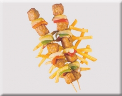 mager vlees dat met paprika's en uien wordt gemarineerd